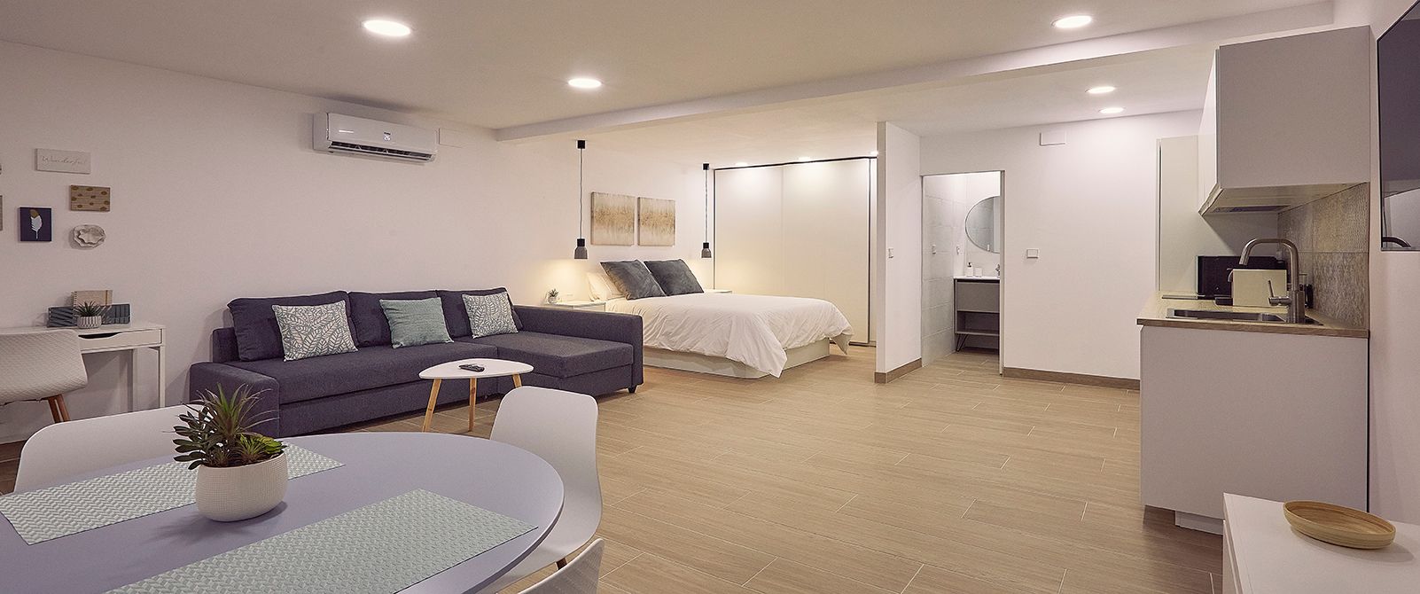 Pequeños apartamentos y estudios para una escapada de fin de semana o estancias cortas. Los apartamentos Mini de Aloha Alicante son los alojamientos ideales para los huéspedes dinámicos y aventureros que aprovechan al máximo su tiempo fuera de casa.